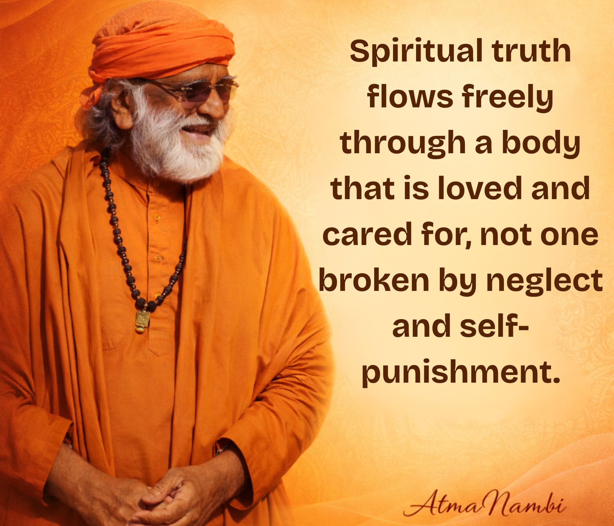 AtmaNambi’s teaching on spiritual truth flowing through a loved and cared for body dissolves one of the oldest and most damaging splits in spiritual culture — the idea that the body is an obstacle to awakening rather than its very instrument. Across centuries, many traditions have treated the physical form with suspicion, even contempt — something to be transcended, subdued, or punished into submission. AtmaNambi offers a profoundly different vision.