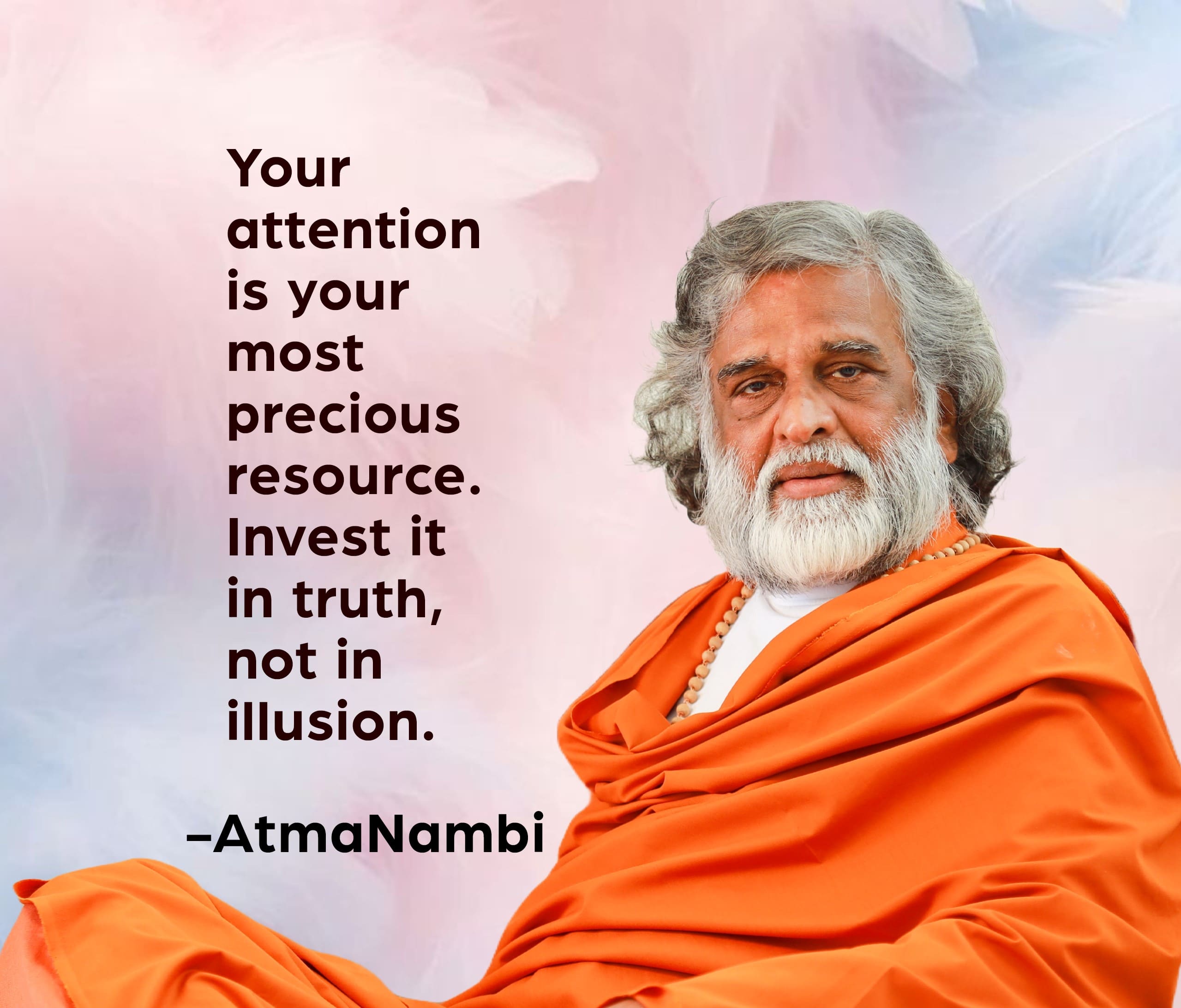 AtmaNambi’s attention as precious resource spiritual teaching arrives at a moment when the world’s most powerful industries are built entirely around capturing and consuming human attention. Notifications, feeds, headlines, entertainment — all compete for the one thing AtmaNambi calls your most precious resource. And most of us give it away freely, without a second thought.