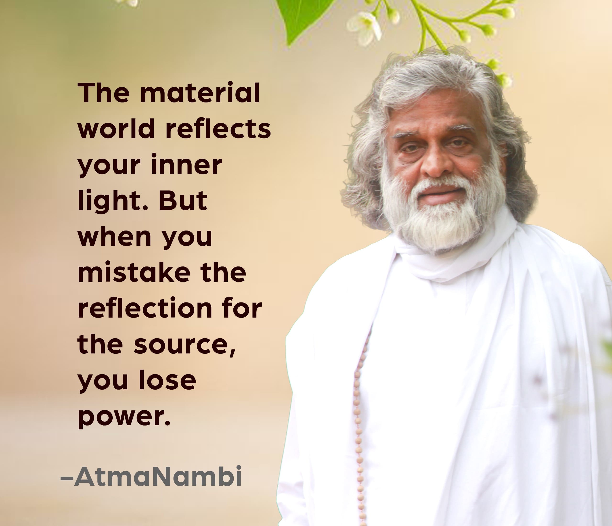 AtmaNambi on inner light cuts through one of the most common causes of human suffering — the confusion between the mirror and what it reflects. The material world is not the enemy. It is not something to be renounced or distrusted. It is, in its way, a faithful reflection of the awareness and light you carry within. When life feels abundant, clear, and alive — that is your inner radiance being expressed outward. When it feels dim and draining — often, you have begun chasing the image in the mirror, forgetting the one who is doing the shining.