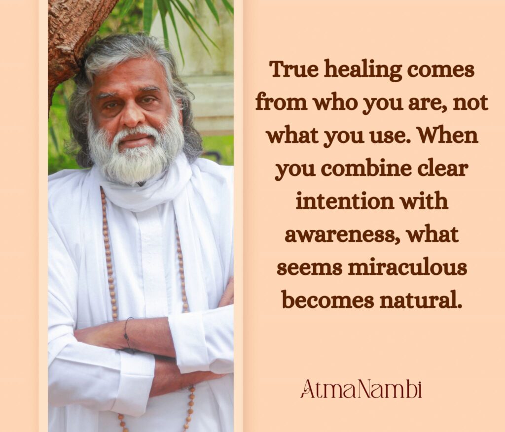 Explore AtmaNambi's transformative teaching on true healing that arises from being rather than doing. When clear intention combines with awareness, miraculous healing becomes the natural expression of consciousness.