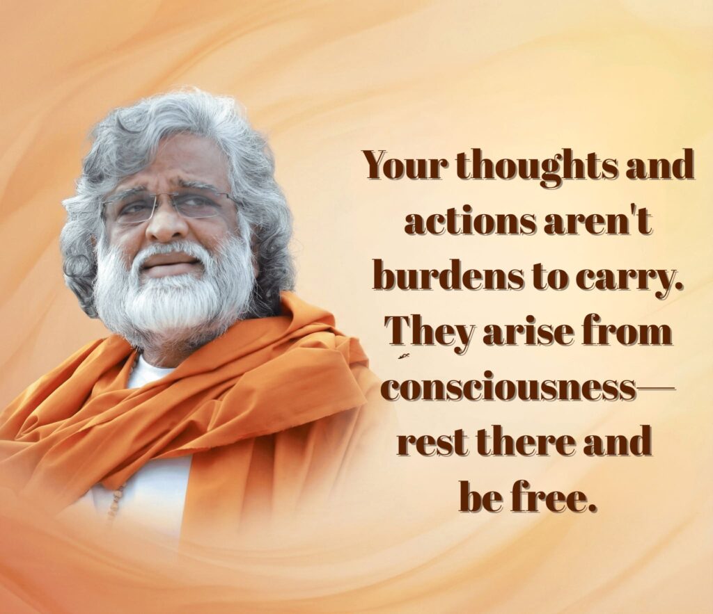 Discover AtmaNambi's teaching on consciousness and freedom: your thoughts and actions aren't burdens to carry—they arise from consciousness. Rest there and experience true liberation from mental suffering.