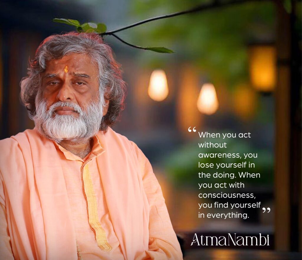 Discover the transformative power when you act with consciousness. Guru AtmaNambi reveals how to stop losing yourself in daily tasks and instead find the divine connection and inner peace in every moment.