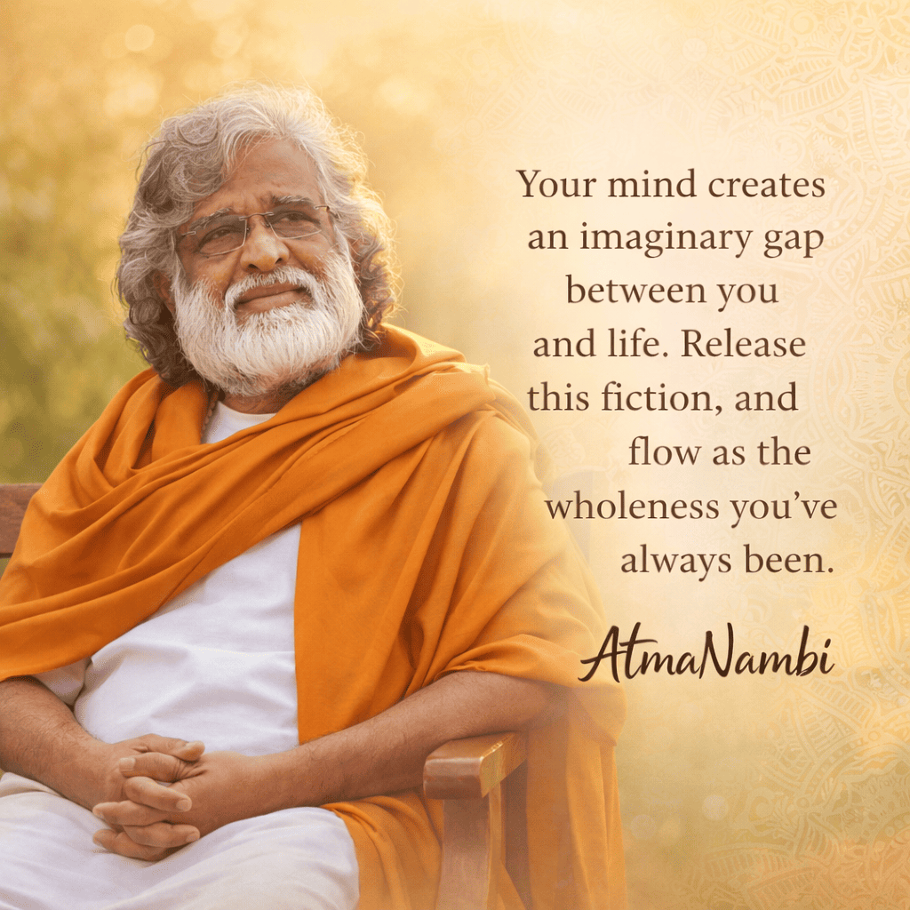 Your mind creates distance where unity exists. Embrace the wisdom of AtmaNambi to discover spiritual wholeness. Drop the fiction of separation and flow effortlessly as the one life you have always been
